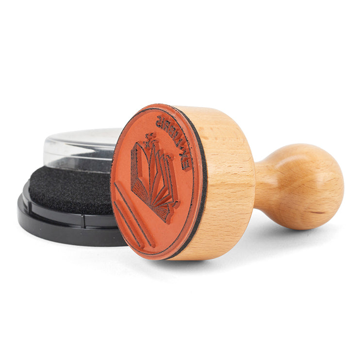 Personalize your library with a stamp and ink set. Stamp creates a space for your name or other relevant tags.